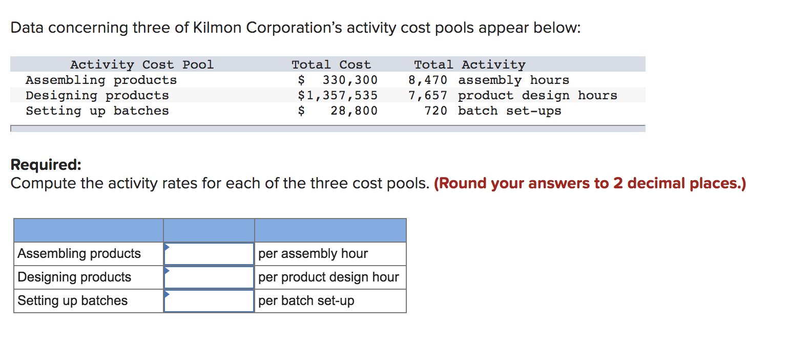 An activity cost pool is an aggregate of all the costs associated with performing a particular business task, such as making a particular product.